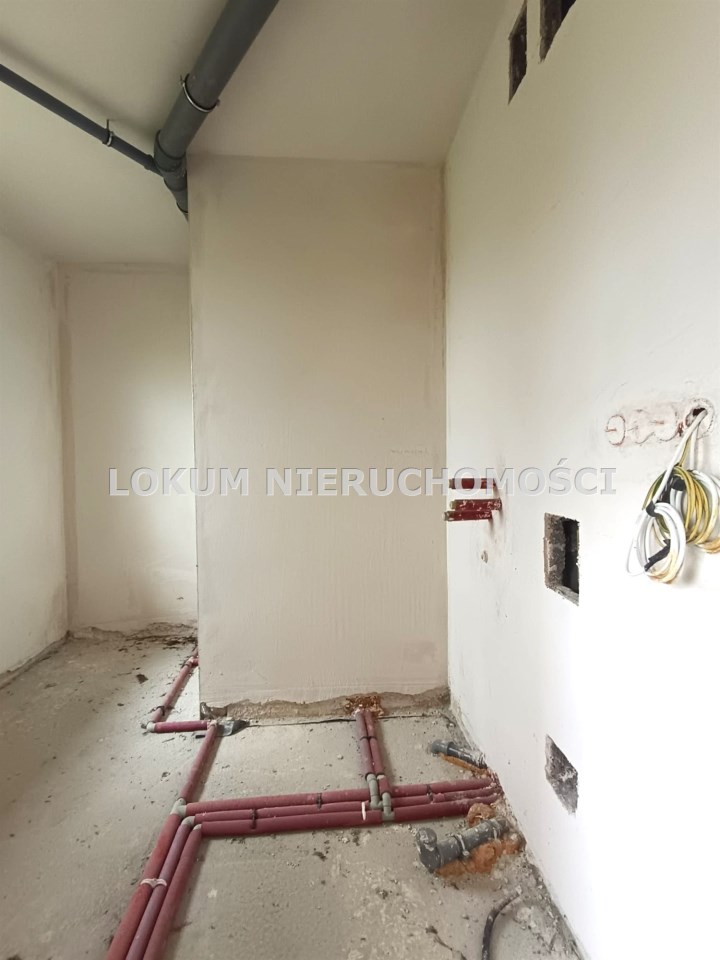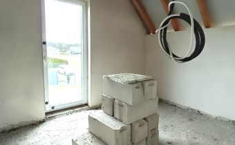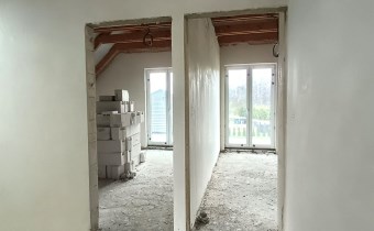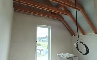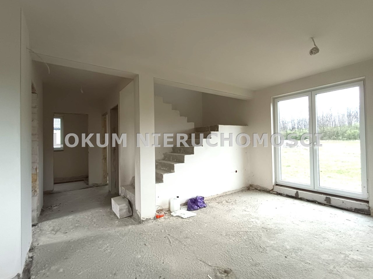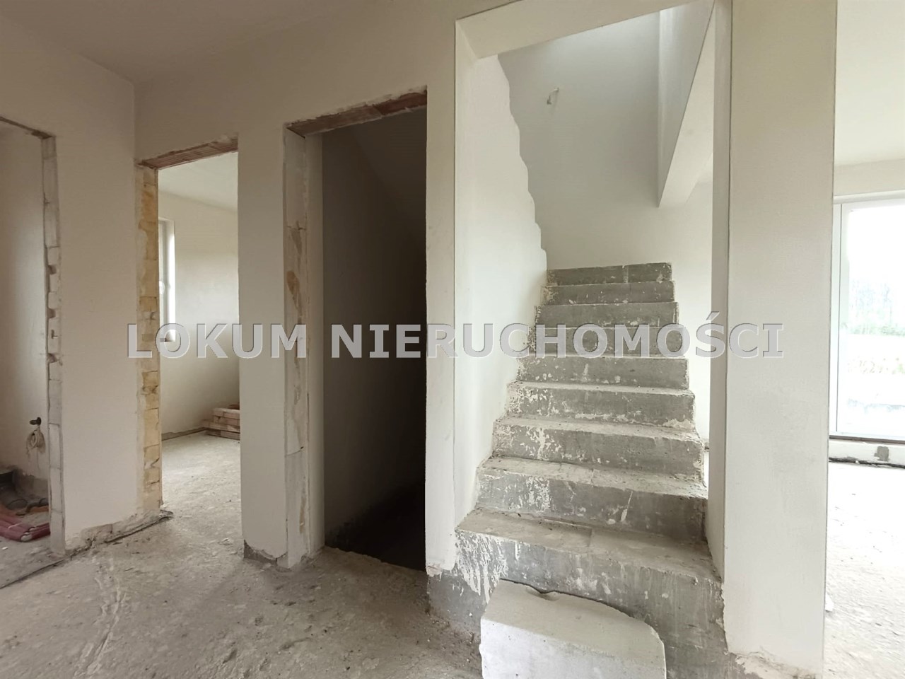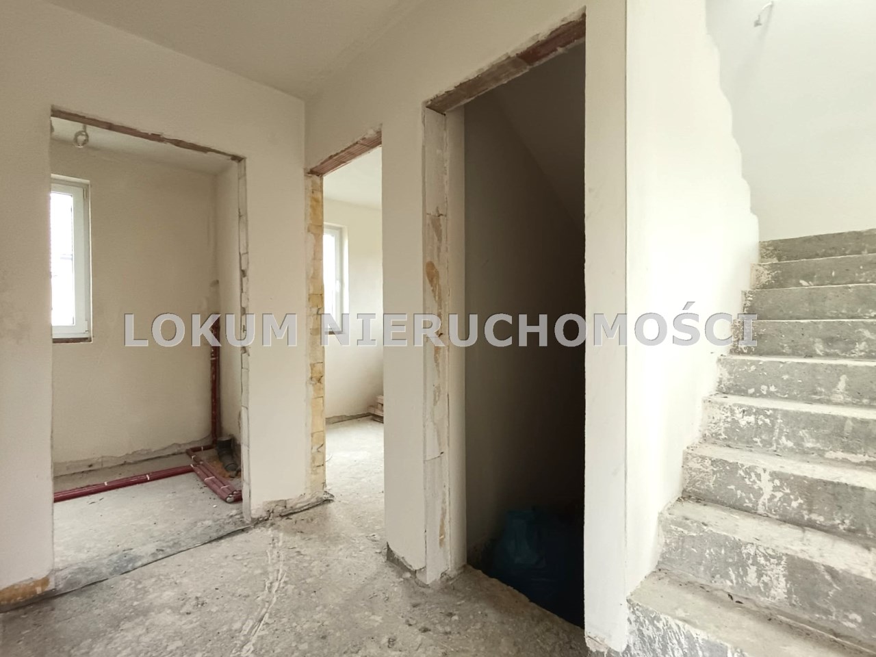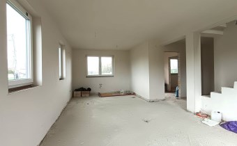 Materiał budowlany - bloczki YTONG. Dach dwuspadowy, kryty blachodachówką. Okna niemieckiej marki Kömmerling wykonane w technologii ciepłego montażu. Na podłogach wykonane zostały pierwsze wylewki. Na ścianach tynki. Wykonany przyłącz elektryczny i wodno-kanalizacyjny - rozprowadzone instalacje. Brak przyłącza gazu - wydane pozwolenie na jego wykonanie. Dojazd do nieruchomości odbywa się drogą asfaltową. Dodatkowo właściciel posiada udział w drodze wewnętrznej.