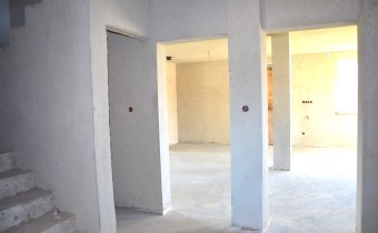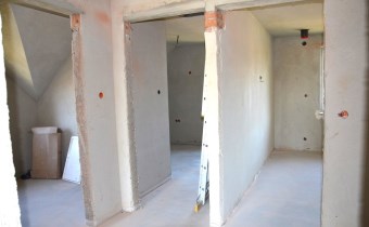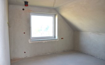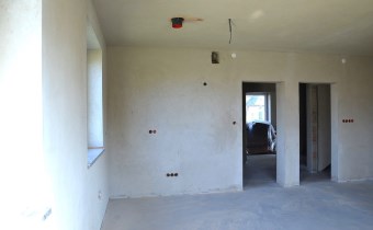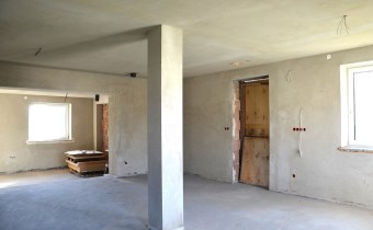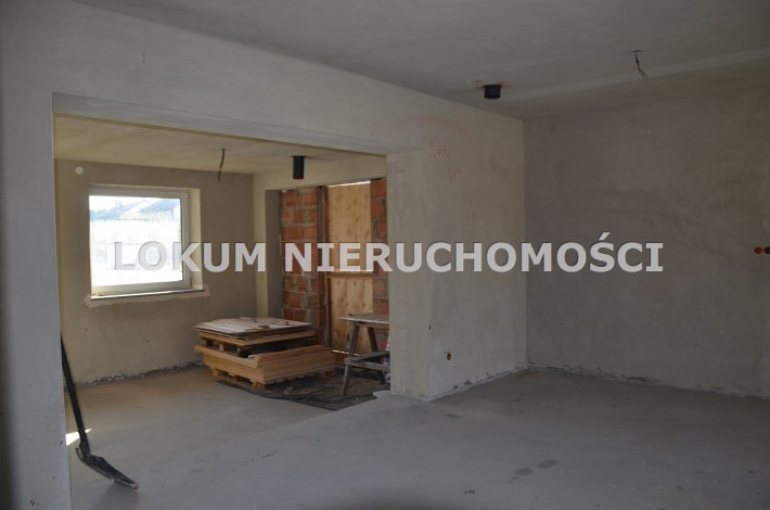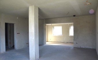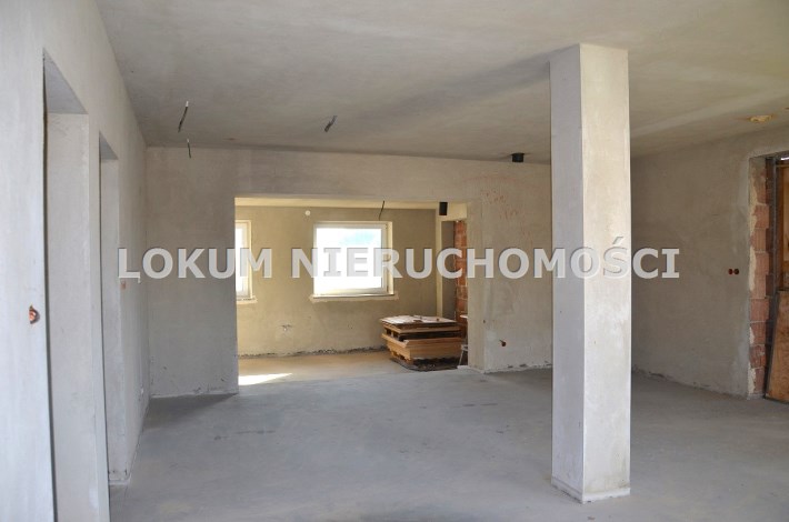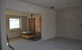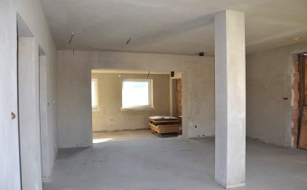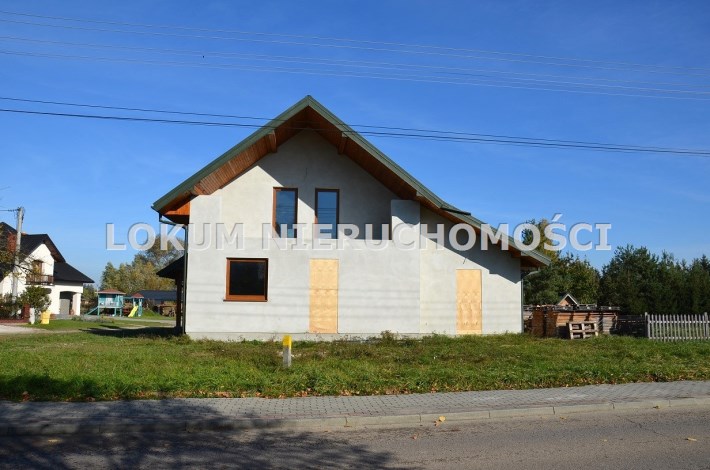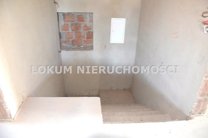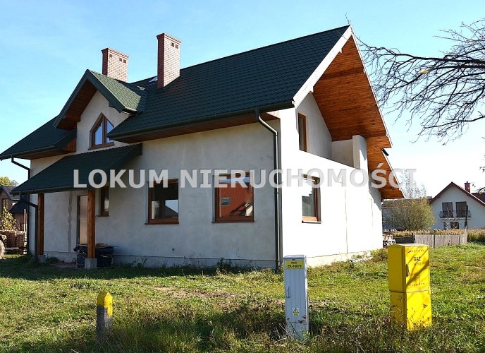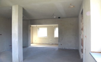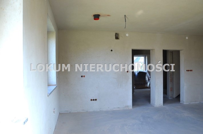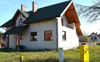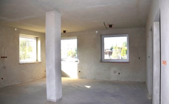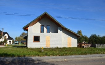 Budynek jest w stanie deweloperskim, budowa rozpoczęta w 2013r.  - wykonane zostały tynki, wylewki oraz wszystkie instalacje: elektryczna, wodno-kanalizacyjna i grzewcza. Wnętrze jest przygotowane do wykończenia według własnego gustu i potrzeb. Dach kryty blachodachówką. Materiał budowlany: pustak MAX, ściany dwudziałowe (dwa pustaki), wewnątrz docieplenie - wełna mineralna 10cm. Okna PCV. Drzwi zewnętrzne metalowe.  Podbitka drewniana wykonana w październiku tego roku.