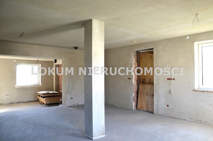 Dom ma funkcjonalny układ pomieszczeń, a w miejscu przewidzianym pierwotnie na garaż przygotowane jest pomieszczenie, które doskonale nadaje się pod prowadzenie działalności gospodarczej, takiej jak biuro, gabinet kosmetyczny czy inny mały punkt usługowy. Dzięki temu nieruchomość sprawdzi się idealnie dla osób, które chcą połączyć komfort mieszkania z możliwością pracy na miejscu. Dogodne położenie przy ulicy zapewnia wygodny dojazd i widoczność dla ewentualnej działalności usługowej.
