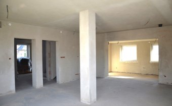 Na parterze: salon, kuchnia, jadalnia, pokój, toaleta, hol, garaż (pomieszczenie pod biznes), kotłownia.  Zadaszony taras.