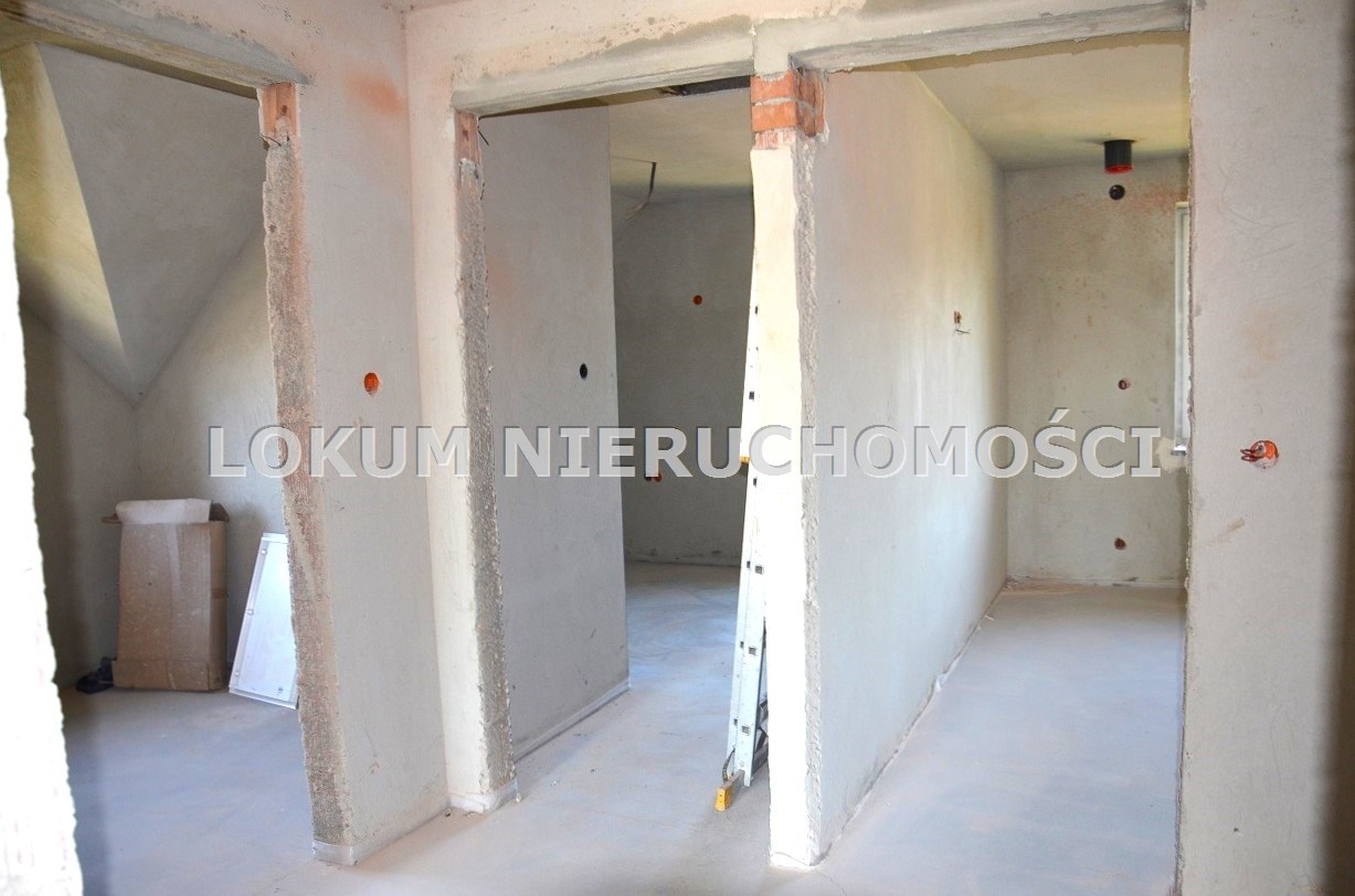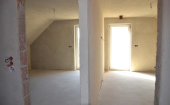Na poddaszu: cztery pokoje, łazienka, korytarz. Balkon loggia z dostępem do dwóch sypialni.