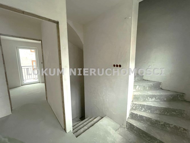 Mieszkanie z wysokim poddaszem do adaptacji o powierzchni użytkowej ok.89,84m2 (po podłodze 100,44m2). Poziomy połączone betonowymi schodami: - na piętrze o pow.53,14m2, znajduje się pokój dzienny, kuchnia, sypialnia, łazienka, hol i klatka schodowa. - na poddaszu pow.36,70m2 (po podłodze 47,30m2) - do adaptacji.