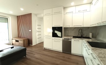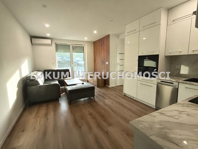 • W pokoju dziennym połączonym z aneksem kuchennym: zabudowa kuchenna wraz z sprzętem AGD: płyta indukcyjna, okap, piekarnik, lodówka, zmywarka, zestaw wypoczynkowy, ława, szafka telewizyjna. Balkon od strony południowej.