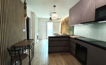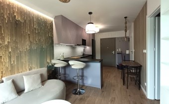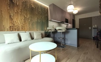 Mieszkanie zostało urządzone w nowoczesnym stylu z wykorzystaniem wysokiej jakości materiałów oraz dbałością o każdy detal. Składa się z jasnego pokoju dziennego z aneksem kuchennym, przytulnej sypialni oraz eleganckiej łazienki z WC. Przestrzeń dzienna została zaprojektowana tak, aby zapewnić komfort i wygodę - znajduje się tu efektowne oświetlenie oraz kominek elektryczny, który nadaje wnętrzu wyjątkowego klimatu.