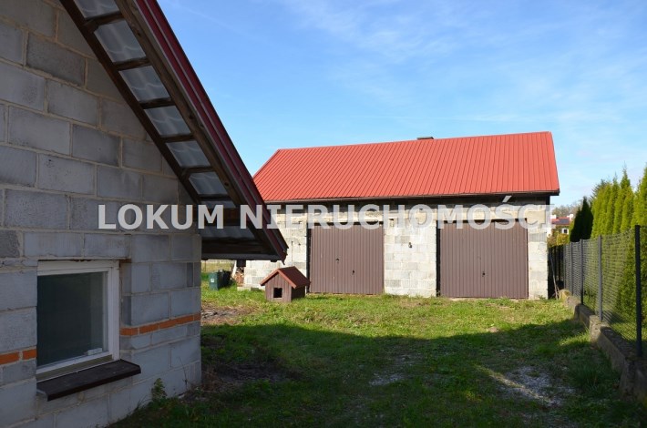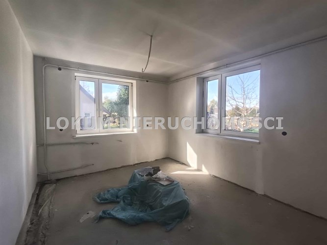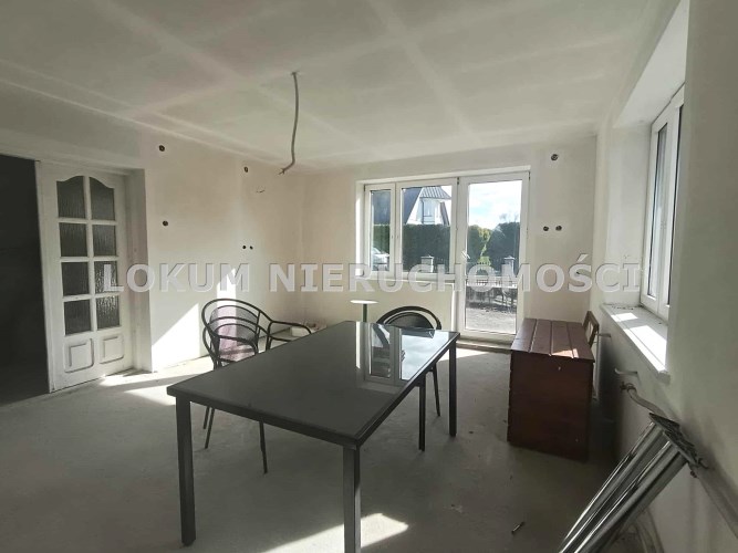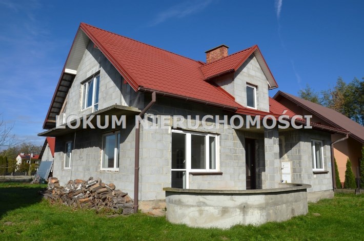 Dom parterowy z użytkowym poddaszem, posadowiony na działce o powierzchni 775m2. Budynek w stanie surowym zamkniętym, zaawansowanym - wykonano już tynki, wylewki oraz wszystkie instalacje wewnętrzne, dzięki czemu nowy właściciel może przystąpić bezpośrednio do etapu wykańczania według własnego projektu i gustu. Rozpoczęcie budowy 1993r. Właściciel posiada pełną dokumentację budowlaną do kontynuacji i zakończenia budowy.